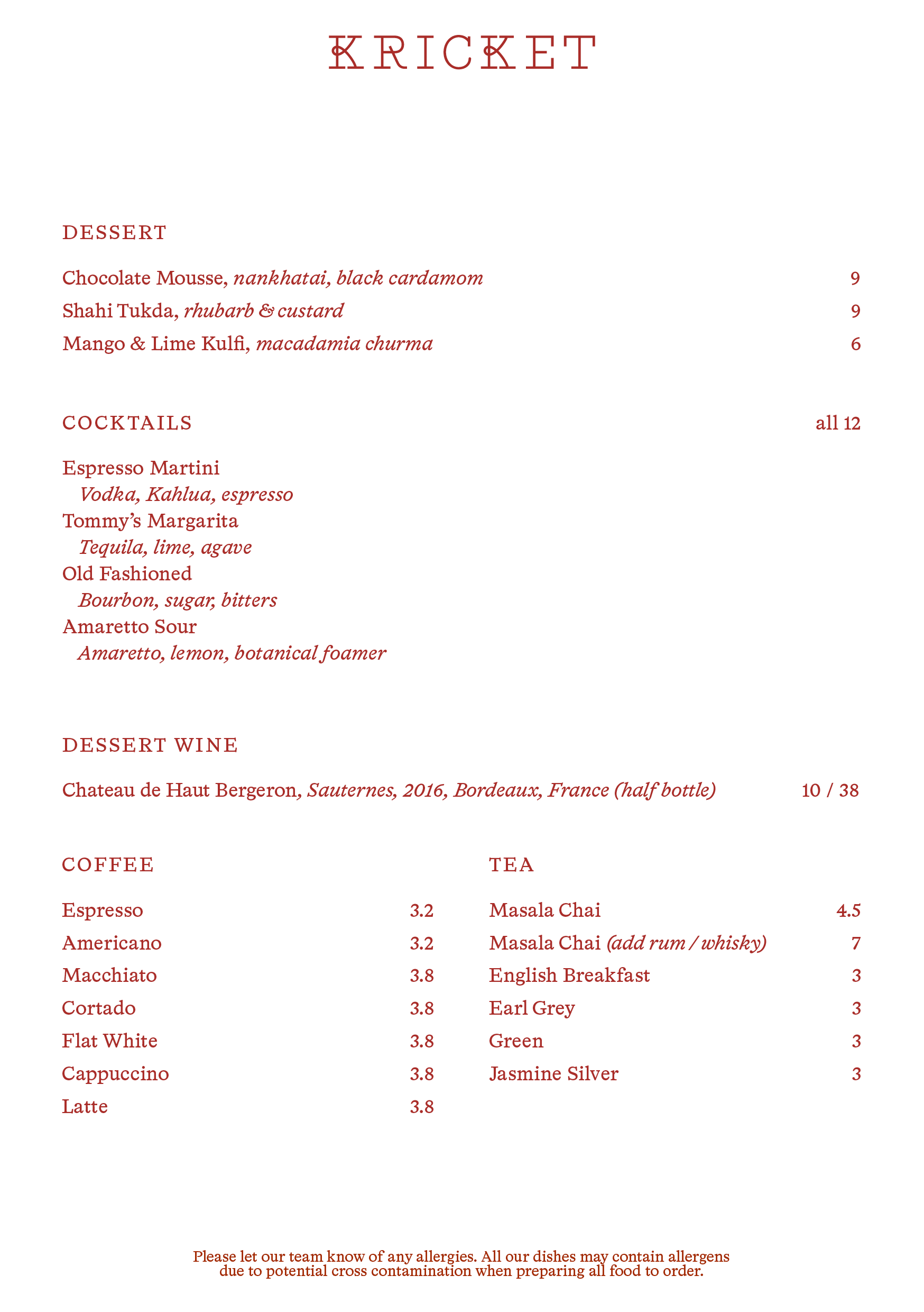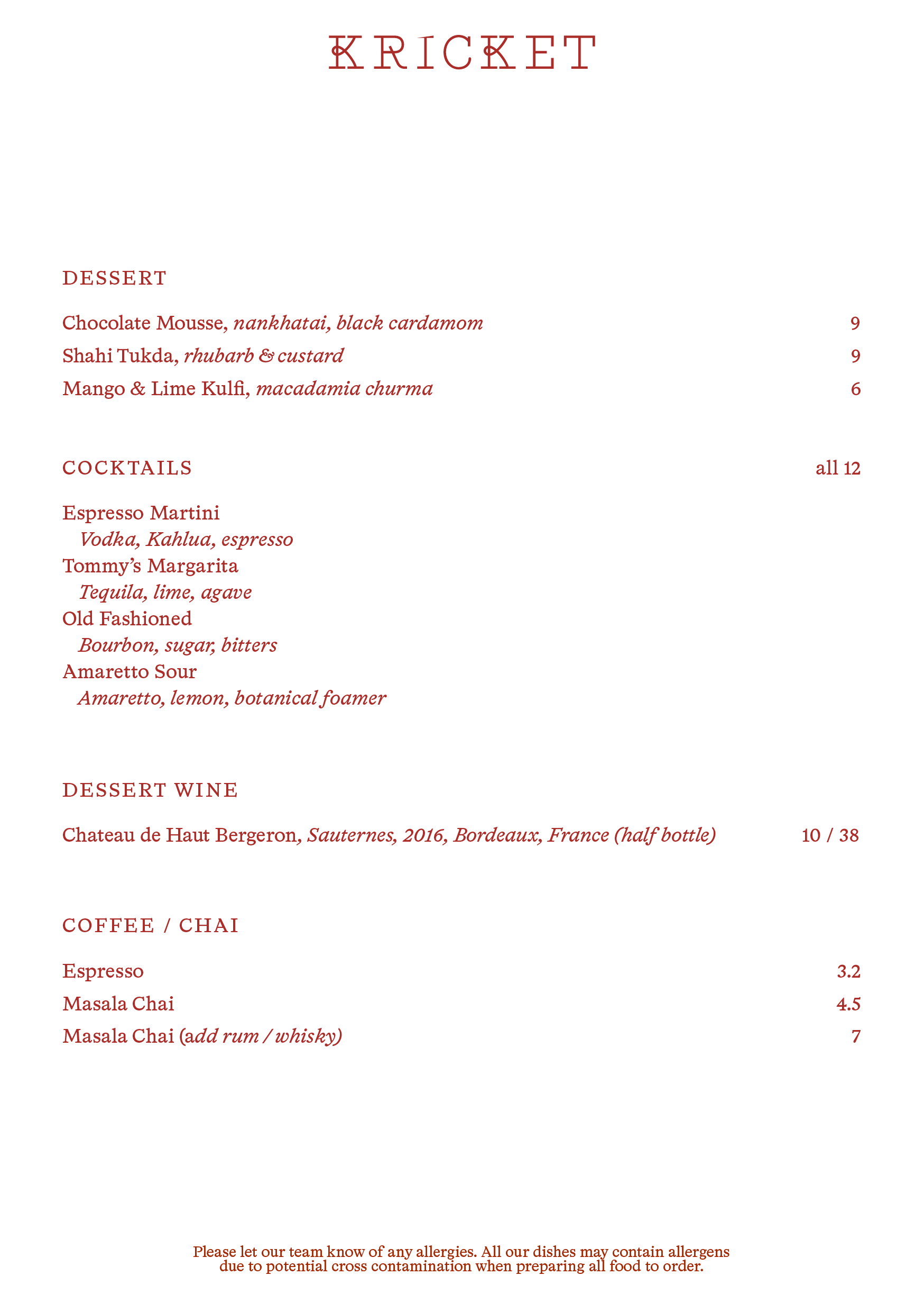 View our allergen menu here