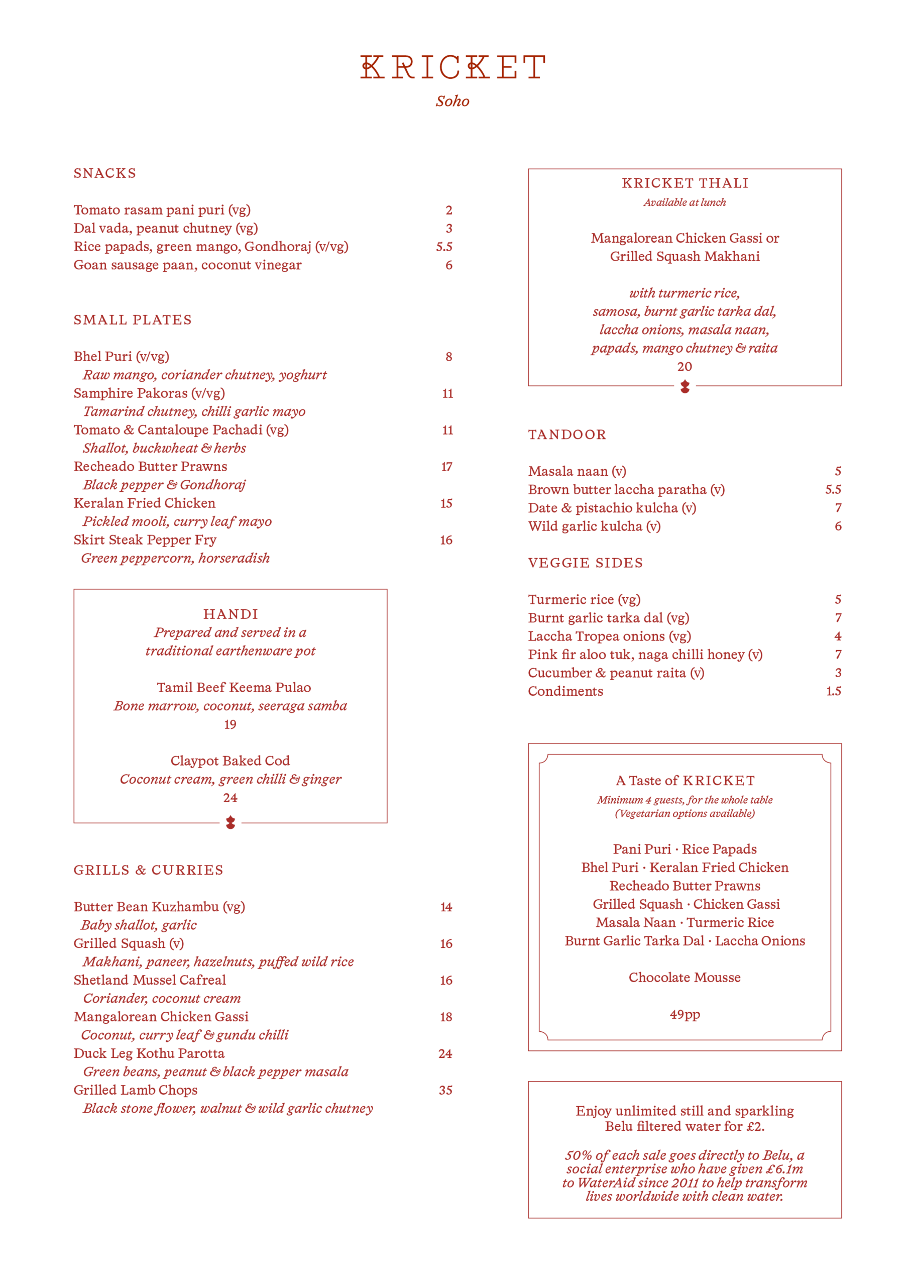 Our menus showcase the breadth and diversity of regional Indian cuisine. We pair British produce with traditional cooking techniques to create modern interpretations of little-known and beloved specialities alike. Our menus are changed occasionally to complement the seasons. Explore our current menus below.